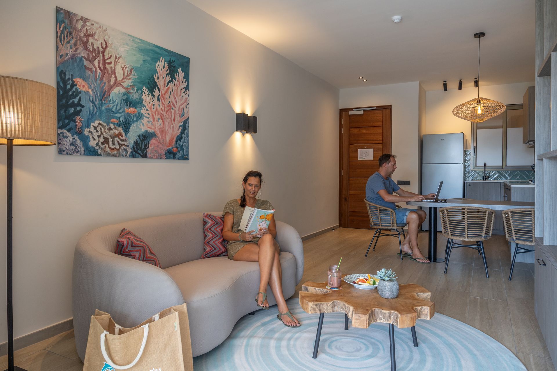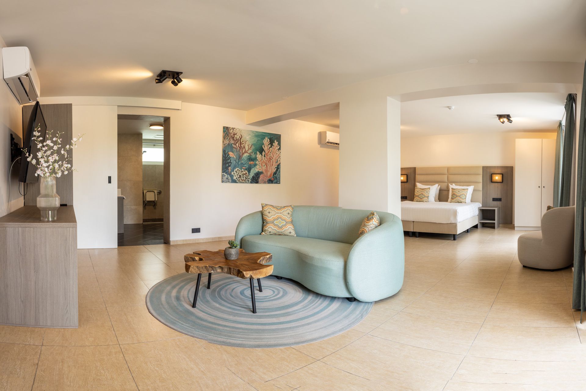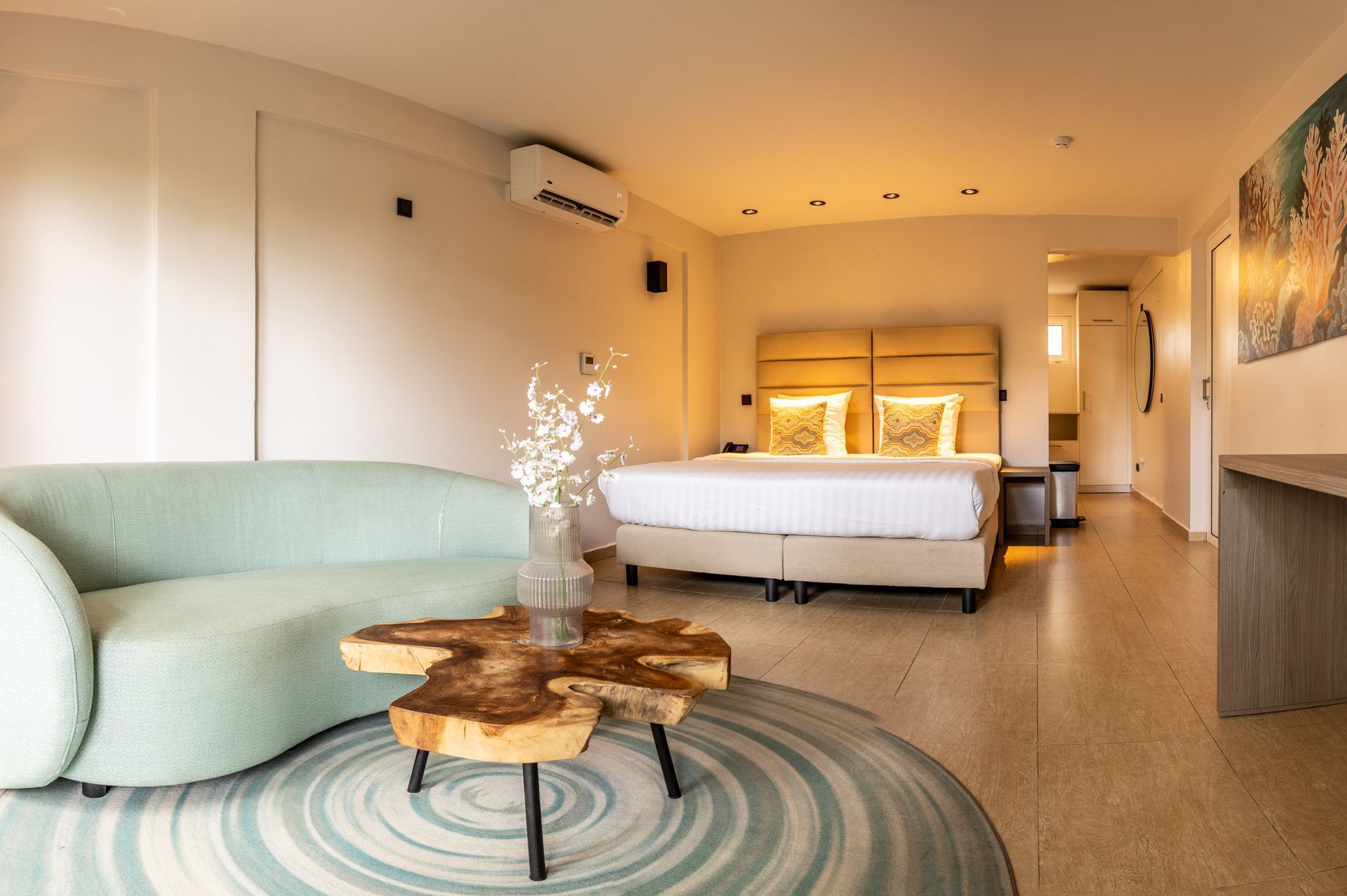 De deluxe kamers, gelegen in de nieuwe vleugel van het hotel, bouwen voort op de indeling van onze populaire Dolphin Rooms maar bieden een compleet nieuwe look & feel! Ook dat extra beetje ruimte en comfort, en wat extra faciliteiten. De gloednieuwe kamers zijn stijlvol en eigentijds en worden gekenmerkt door een open slaap- en woonruimte. De deluxe kamer heeft een ruime badkamer en een balkon of terras. Alle kamers hebben een ander uitzicht. Je kunt een voorkeur aangeven (parkeerplaats, omgeven gebouwen, groene struiken of uitzicht op het zwembad), maar opdrachten zijn op basis van beschikbaarheid – nooit gegarandeerd.