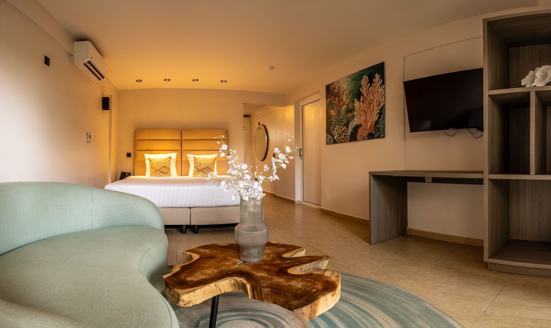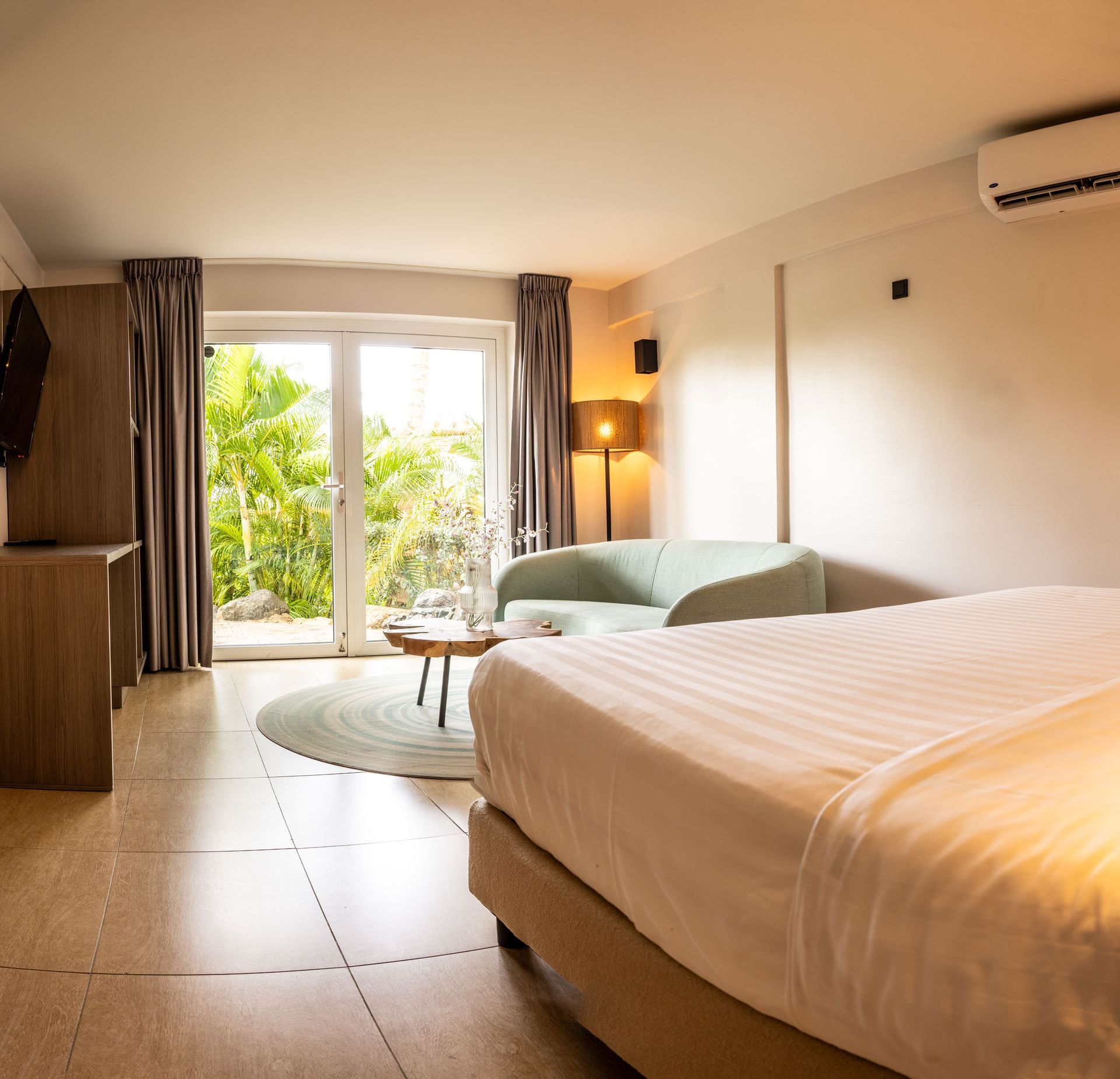 Een ideale oplossing voor een familie of groep van meer dan 4 personen. Het Dolphin Apartment combineert een 2-slaapkamer suite met een standaard kamer en is zodoende geschikt voor maximaal 5 personen. Het Dolphin Apartment is gelegen aan de linkerzijde van het hotel op de begane grond en beschikt over een eigen terras aan de voorzijde van het hotel. Tevens heeft het appartement via de achterzijde toegang tot een rustige en ruime binnentuin met voldoende zit- en lounge gelegenheid. Het is comfortabel en modern ingericht en van alle gemakken voorzien.
