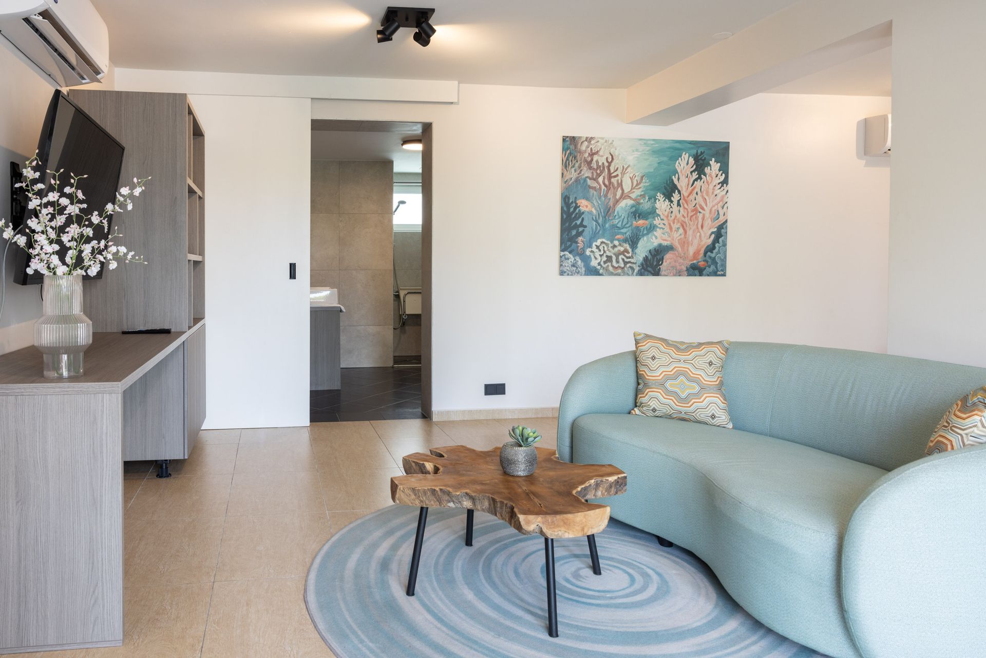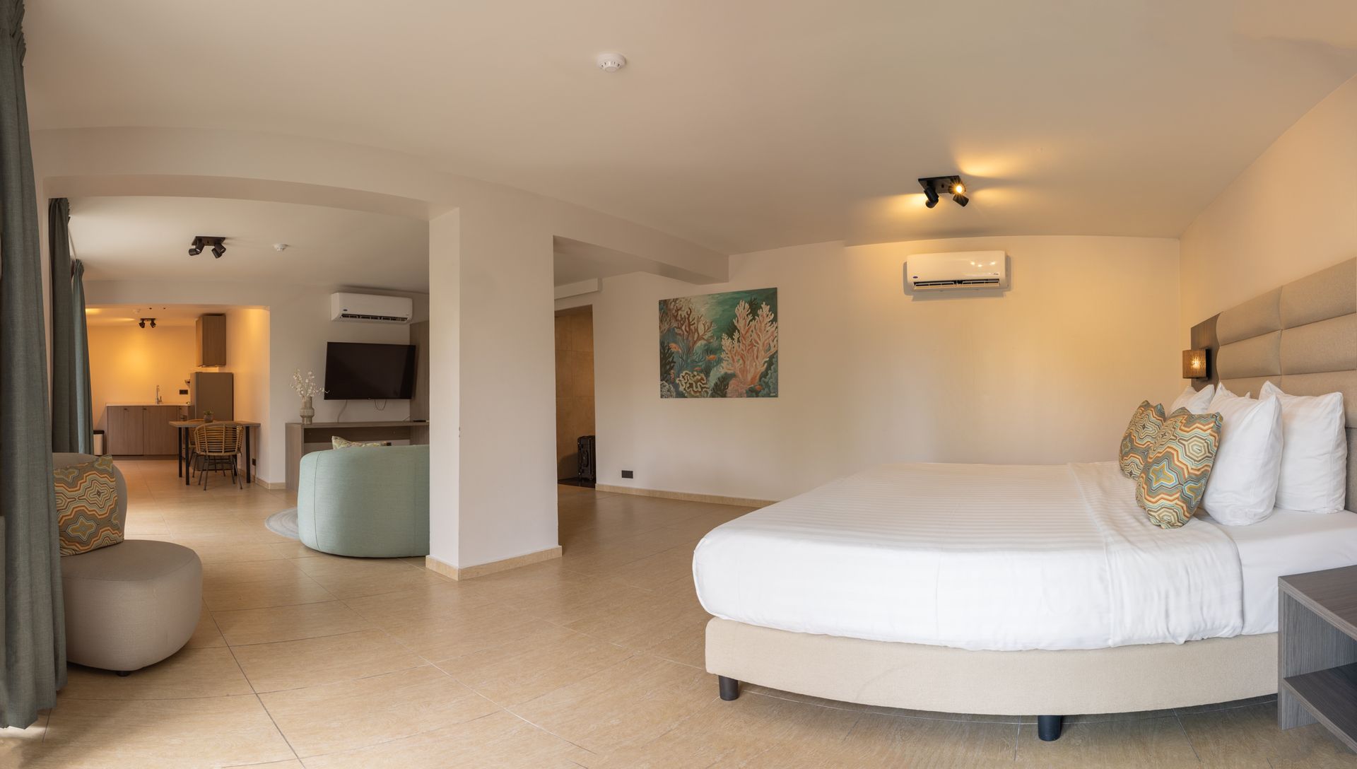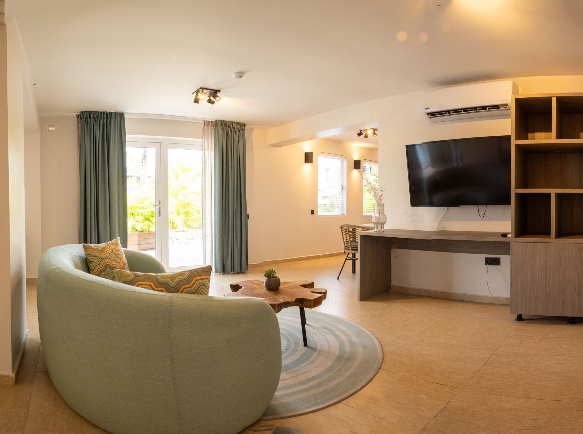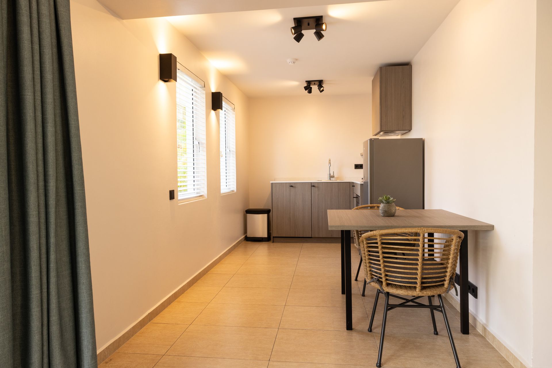 The Dolphin Studio is our boutique hotel’s showpiece. It’s very popular with 'honeymooners'. With lots of daylight, and garden en pool views of the Caribbean Sea, the studio is extravagant in space and design. The sleeping area, kitchen and living room are combined, the bathroom is separate. Our studio is the perfect accommodation for couples who are looking for a spacious and luxurious accommodation.