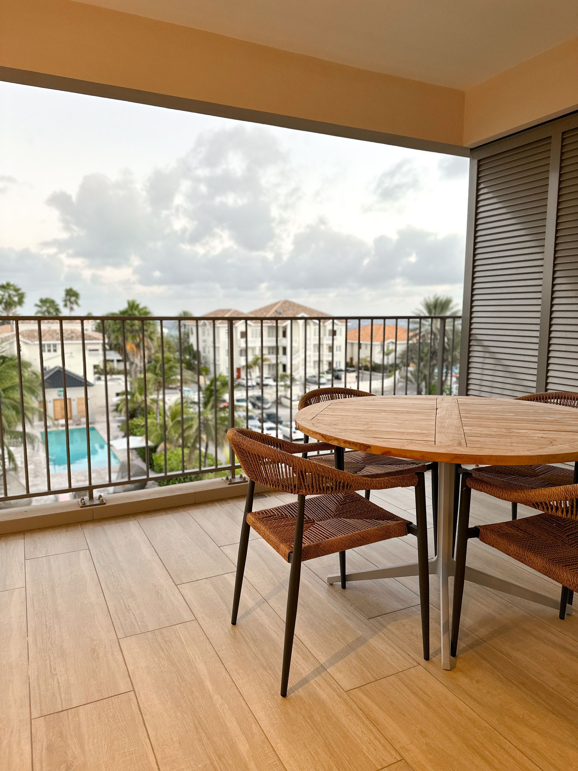 - An outdoor balcony, including a dining table and four chairs (certain top floor deluxe suites feature a bigger balcony and outdoor lounge suite)